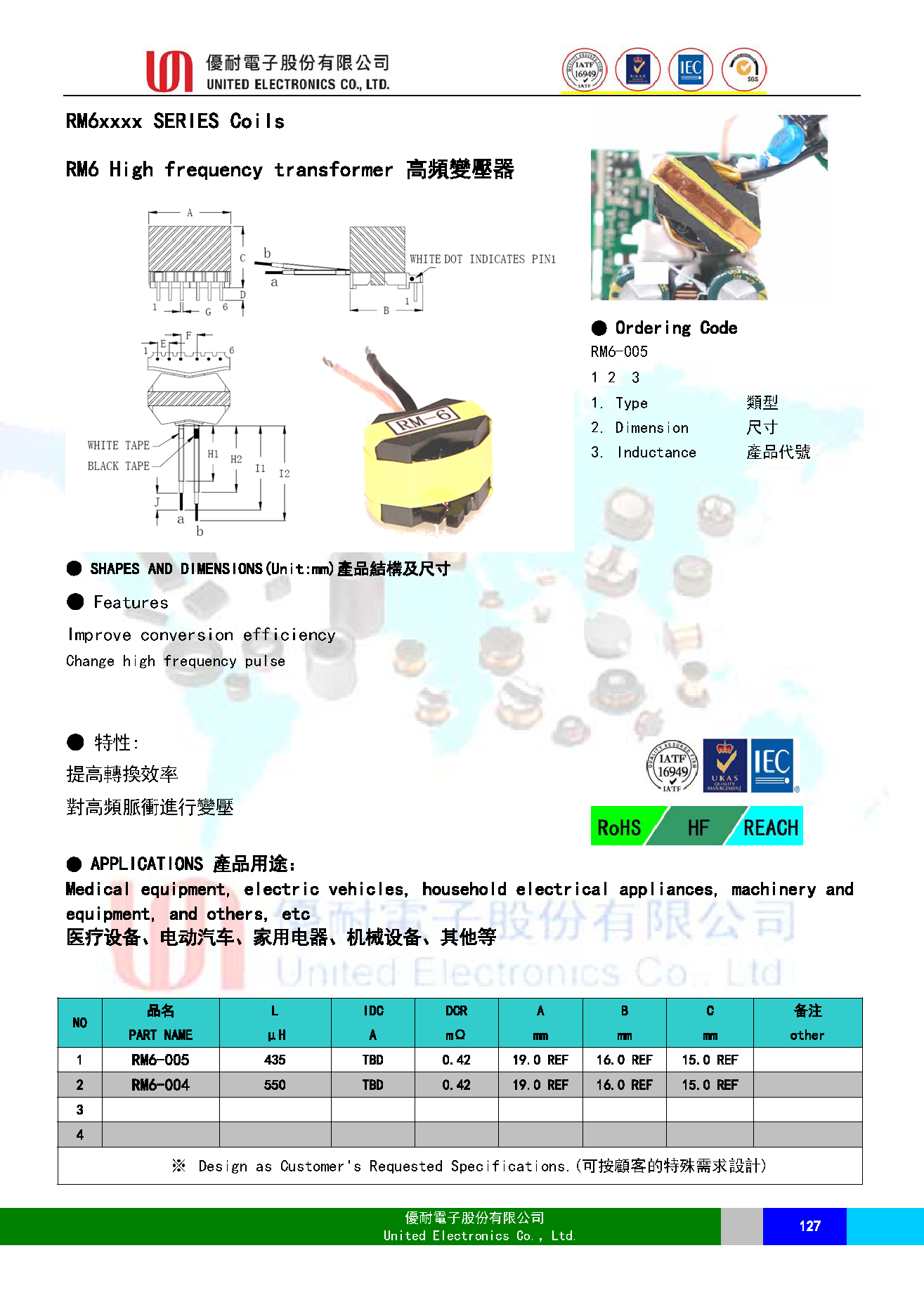 RM6 高频变压器