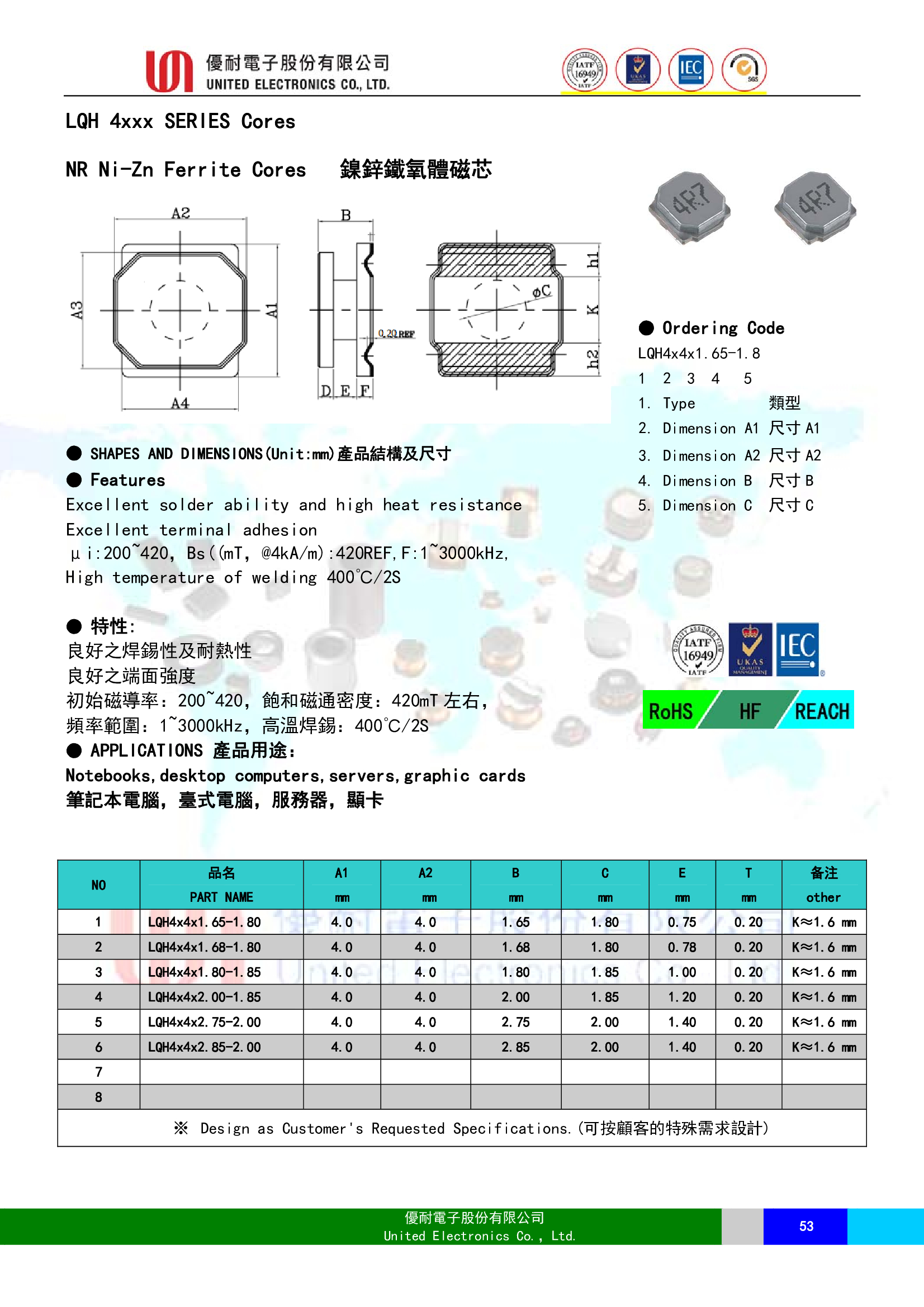 LQH 4xxx SERIES 镍锌铁氧体磁芯